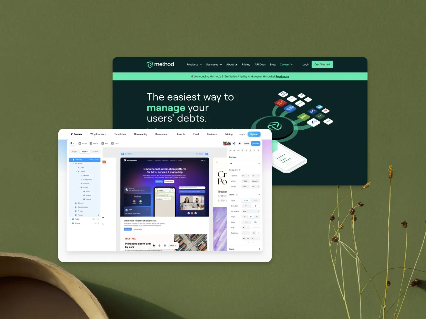 Accompagnato da una barra di navigazione in cima allo schermo che porta i visitatori direttamente agli utilizzi, ai template, ai prezzi, alle risorse, ai premi vinti dall’azienda e ad altri strumenti e integrazioni con cui lavora Framer, il risultato è un sito potente che risulta estremamente facile da navigare e che espone la proposta di valore in modo rapido e chiaro.