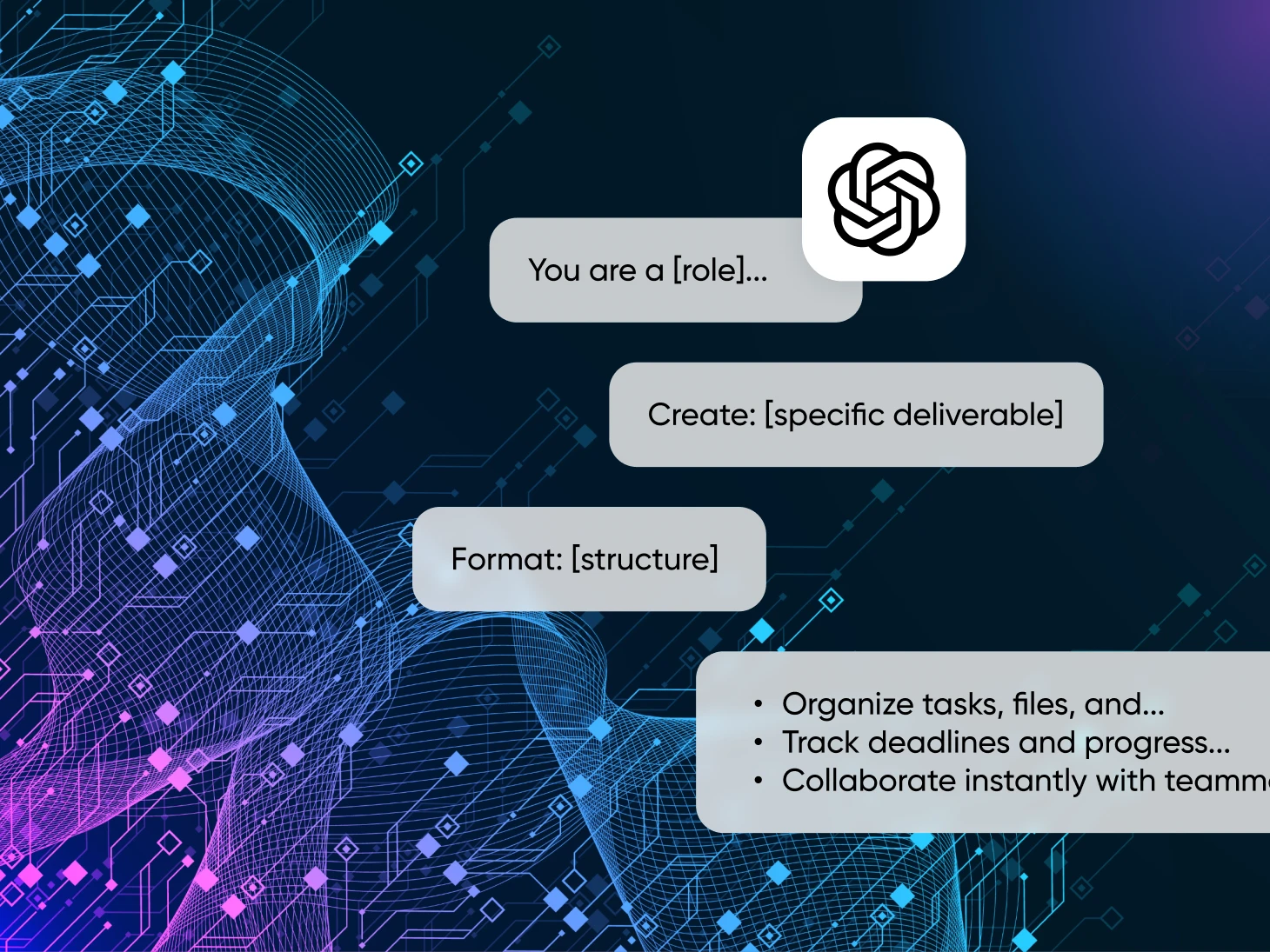 ChatGPT é uma máquina simples de reconhecimento de padrões. A linguagem e os dados no seu prompt definirão como será o seu resultado. Geralmente, a diferença entre conteúdo de IA genérico e material utilizável é a especificidade sobre entregas, público e restrições.